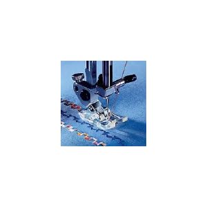 Use the Clearview Foot for an optimal view of your stitches while sewing. This foot has easily visible markings to help you position decorative stitches and borders on your fabric. A special groovy on the bottom allows even densely stitched patterns to be fed perfectly.